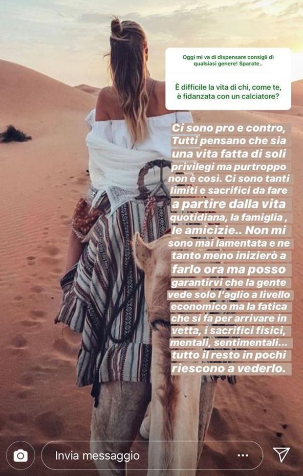 Giulia Amodio, fidanzata di Stefano Sensi, ha risposto alle numerose curiosità dei suoi follower: "Cosa ho pensato di Stefano quando l'ho visto la prima volta? Che fosse un grandissimo stronzo arrogante... Se è difficile la vita di fidanzata di un calciatore? Ci sono pro e contro. Tutti pensano che sia una vita fatta di soli privilegi ma purtroppo non è così. Ci sono tanti limiti e sacrifici da fare a partire dalla vita quotidiana, la famiglia, le amicizie... Non mi sono mai lamentata e non inizierò a farlo ora ma posso garantirvi che la gente vede solo l'agio a livello economico, ma la la fatica che si fa per arrivare in vetta, i sacrifici fisici, mentali, sentimentali... tutto il resto in pochi riescono a vederlo".