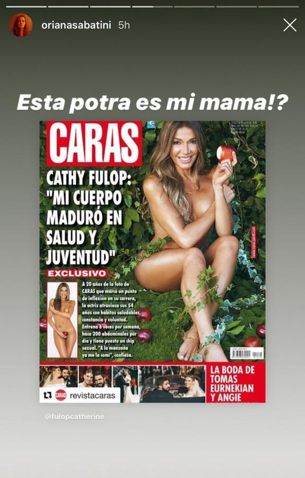 Catherine Fulop ha 54 anni ma si mantiene in perfetta forma. Alla rivista argentina Caras ha raccontato i segreti per avere e mantenere un corpo come se il tempo non passasse. La madre di Oriana Sabatini ha scritto un libro e per l'occasione la rivista argentina ha ripubblicato una sua foto di quando aveva vent'anni. “Non esiste una formula magica per sentirsi bene. Bisogna godersi i bei momenti e compensare con l'attività fisica che ci piace di più. La chiave è raggiungere un benessere globale. Il mio corpo è maturato in salute e giovinezza attraverso una costante ricerca di abitudini sane. Le mie figlie? Oriana ora frequenta una persona che si prende molta cura del suo fisico perché è un atleta (Paulo Dybala) e ha naturalmente adottato abitudini alimentari e di esercizio fisico più sane". Oriana Sabatini ha commentato con un'espressione colorita la cover della mamma: "Questa 'puledra' è mia mamma??"
