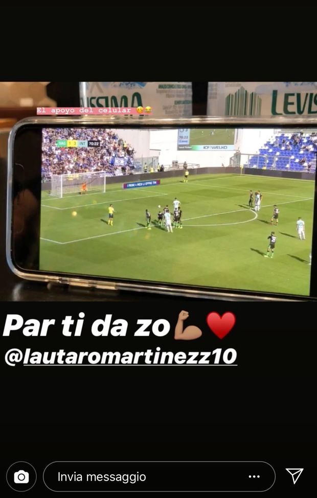 Agustina Gandolfo, fidanzata di Lautaro Martinez, non si perde una partita dell'Inter ma in questo week end ha dovuto fare un'eccezione. La modella si trova infatti a Venezia per trascorrere alcuni giorni con la madre. L'argentina non si è però persa la partita del fidanzato e si è sintonizzata su Sassuolo-Inter con il suo cellulare a pranzo. Metodo insolito ma efficace. Agustina ha commentato entusiasta il partitone del Toro.