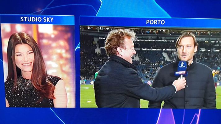 Prima della gara tra Roma e Porto l'ex capitano ha risposto anche ad una domanda sul portiere compagno della conduttrice di Sky