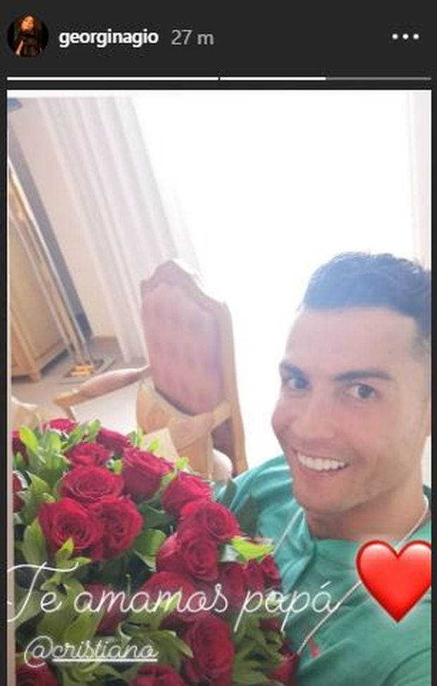 “Ti amiamo papà”, la dedica di Georgina. E a Cristiano Ronaldo arriva un mazzo di rose rosse